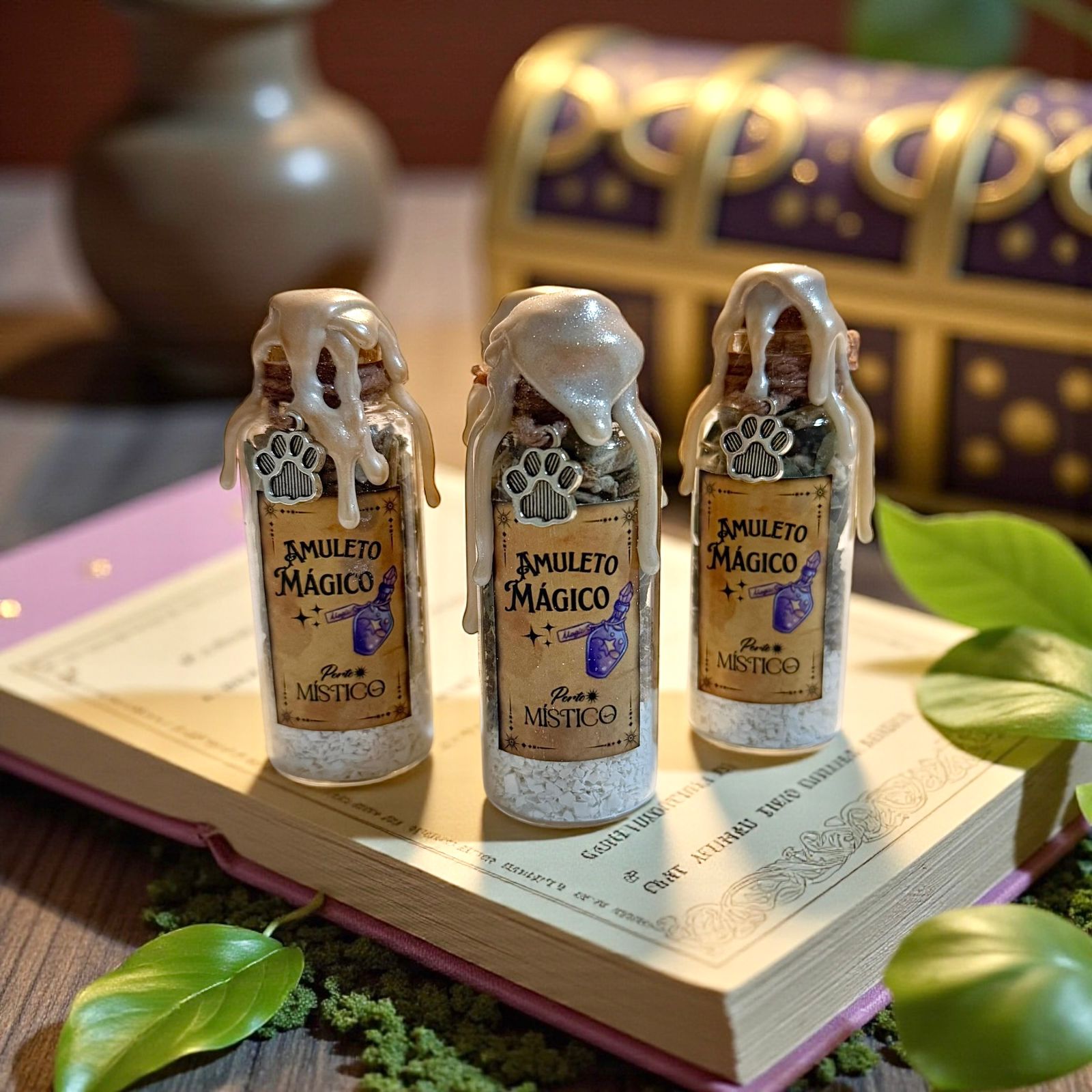 Com 30ml, cada amuleto é artesanalmente produzido em pequenos lotes, conjurado um a um com intenção amorosa e dedicada aos nossos amigos peludos. É um cuidado místico e afetuoso que conecta a espiritualidade com o vínculo único entre você e seu pet.