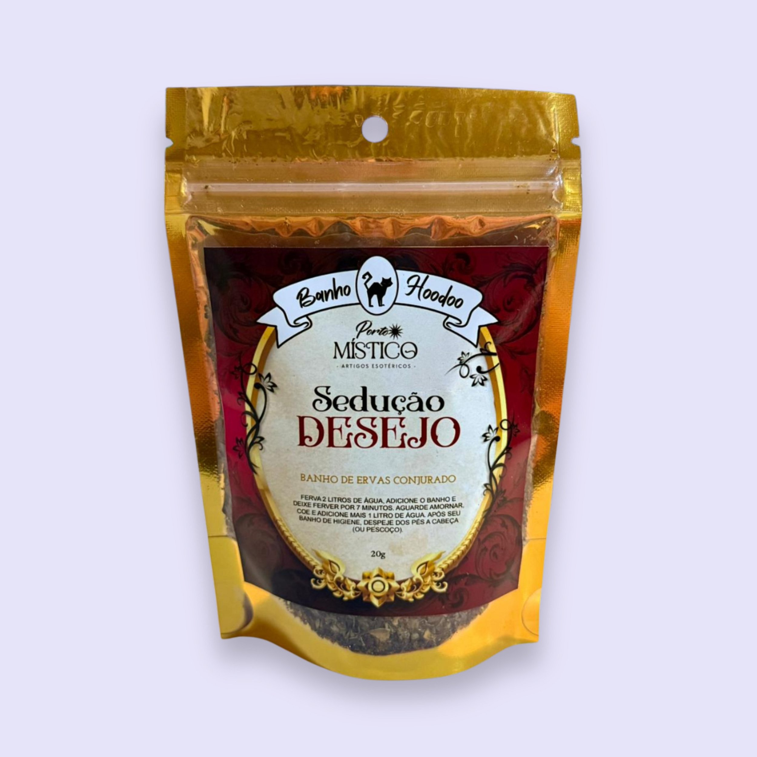 Contém 1 sachê de Banho Hoodoo de Sedução e Desejo.