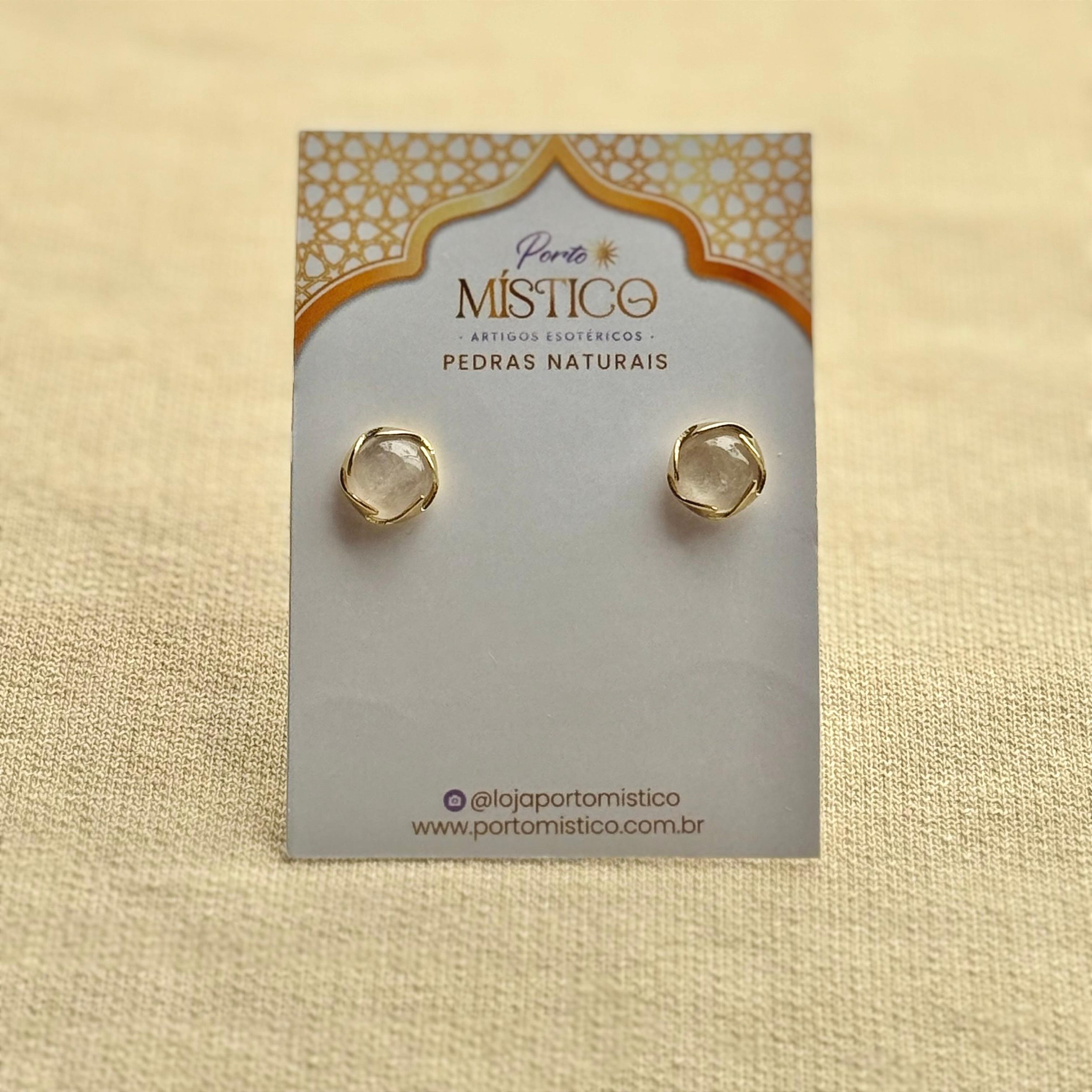Brinco meia esfera com pedra natural Quartzo Branco (transparente). Representa clareza, purificação e amplificação energética. Uma peça coringa para elevar sua vibração.