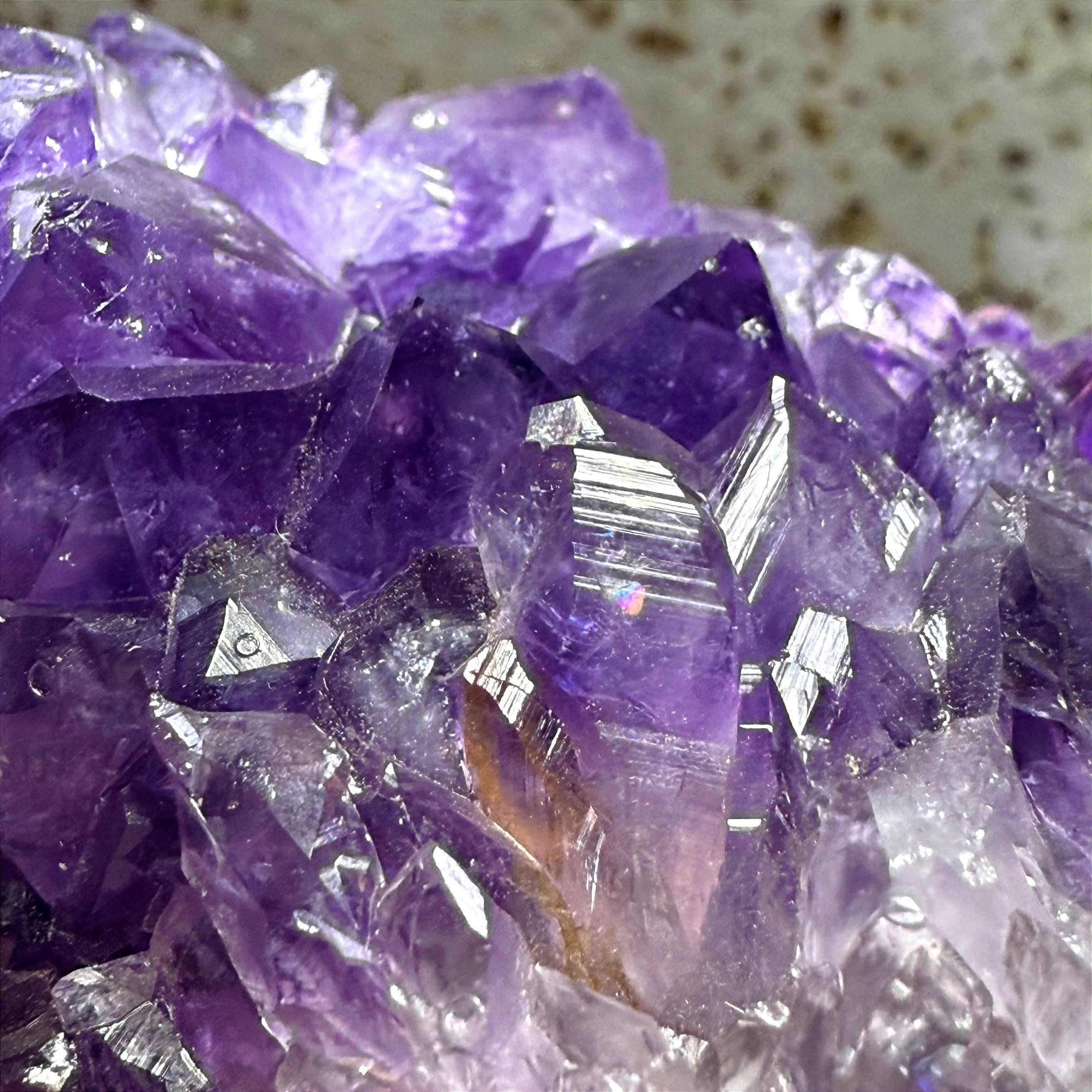 Drusa de Ametista com qualidade excelente e brilho natural intenso. Com formação em pontas bem definidas, essa peça é ideal para quem busca purificação, elevação espiritual e equilíbrio vibracional.