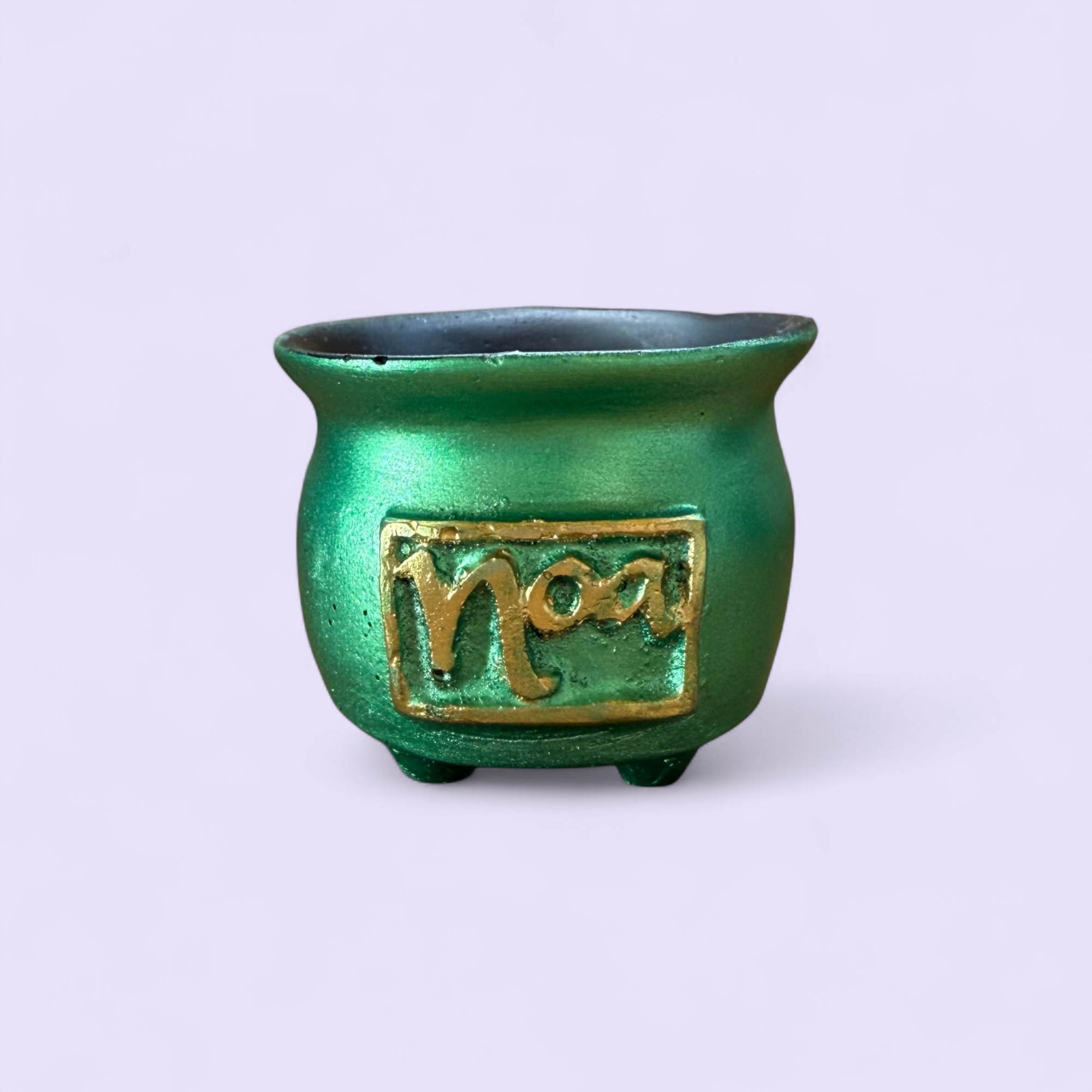 Mini caldeirão / sahumador artesanal feito em resina com pintura perolada, trazendo toda a energia e o mistério do mundo místico para o seu ritual. Seu design funcional permite carregar e espalhar a fumaça da defumação por diversos ambientes, ampliando a purificação e a energia positiva.