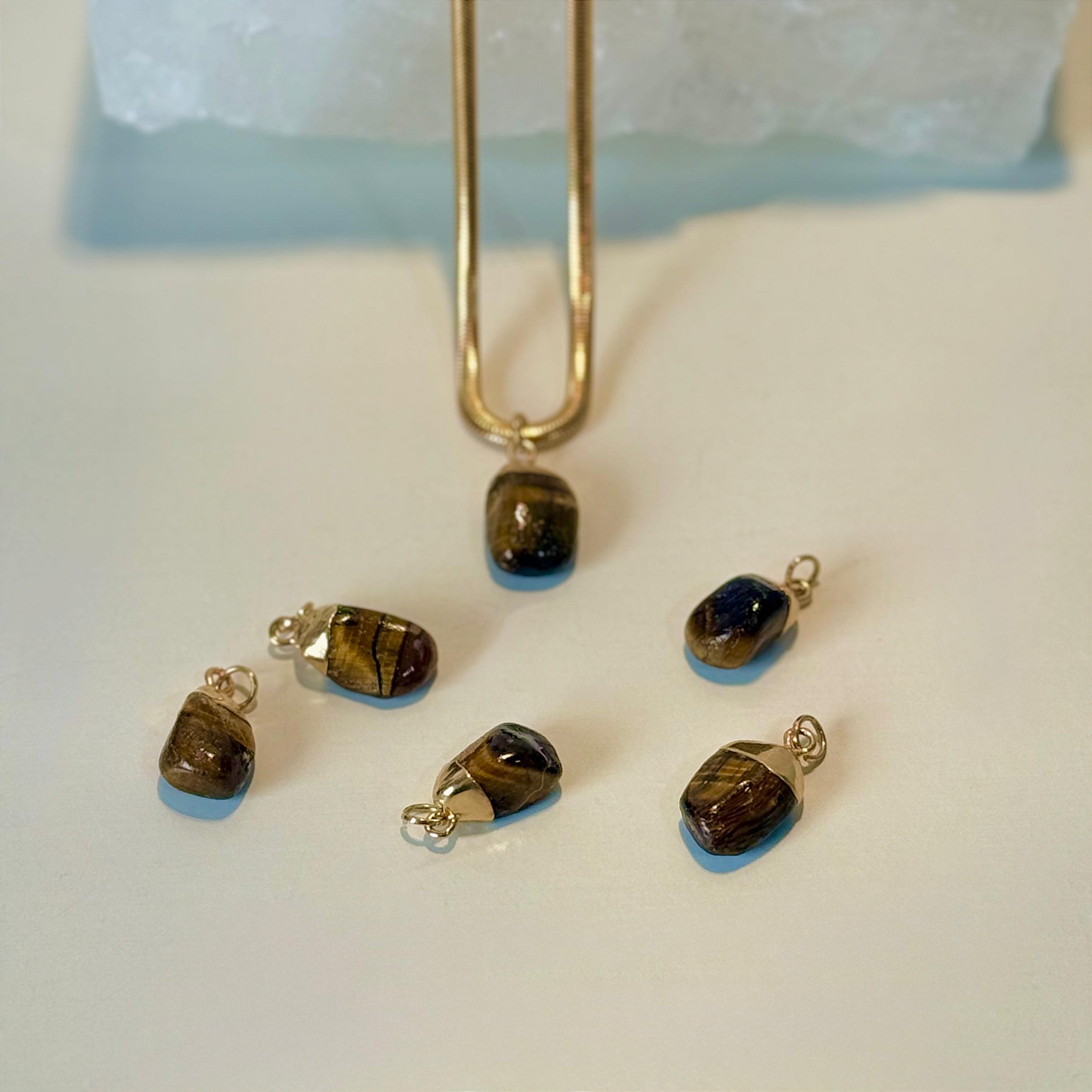 Este pingente com pedra natural lapidada e folheado a Ouro 18K é uma peça elegante com significado profundo. Ideal para quem busca determinação, foco nos objetivos e blindagem espiritual no dia a dia.